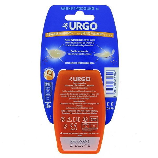 L'assortiment de pansement pour Ampoules Urgo contient 3 pansements ampoules petit format (6,1 x 2,5 cm) et 3 pansement ampoules grand format (7,2 x 4,3 cm). Les pansements Urgo Ampoules soulagent immédiatement et facilite la cicatrisation.