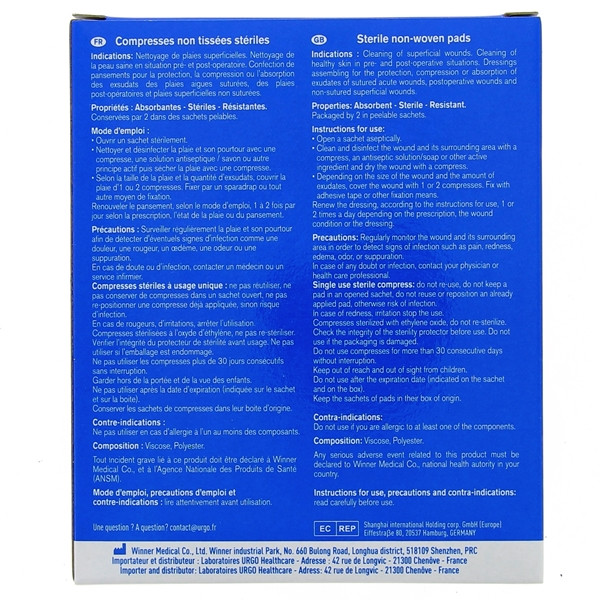Les Compresses stériles non tissées sont fabriquées en France par les laboratoires Urgo qui attachent une importance majeure à la recherche clinique afin de démontrer l’efficacité de ses produits.