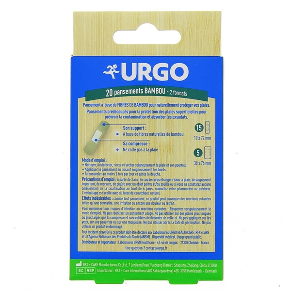 Les pansements Bambou des laboratories Urgo sont des dispositifs médicaux de premiers soins dédiés à la protection de plaies superficielles. Ils sont utilisables chez l’adulte et l’enfant à partir de 3 ans.
