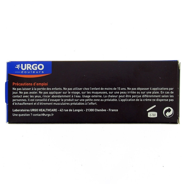 Il est déconseillé de laisser l’Urgo Crème Chauffante à la portée des enfants ou de l’avaler. La crème de massage Urgo est contre-indiquée chez les enfants de moins de 15 ans. Il ne faut pas dépasser 4 applications par jour. Il ne faut pas non plus utiliser cette crème sur le visage, les muqueuses, une peau irritée ou sur une plaie.