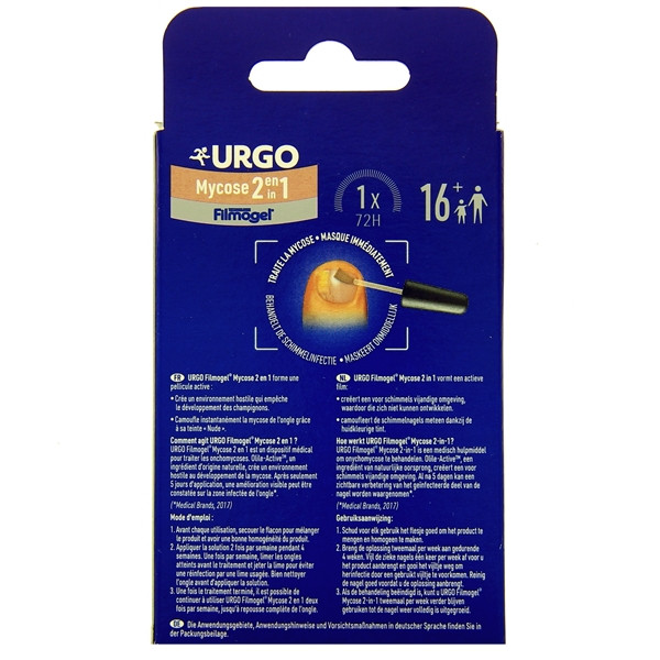 Filmogel Mycose 2en1 forme une pellicule active sur l'ongle pour traiter la mycose tout en la masquant. Le camouflage dure 72 h et les résultats sont visibles en 5 jours.