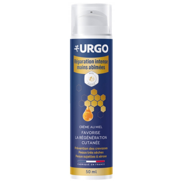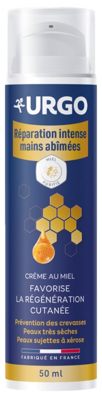 La Crème Réparatrice Intense Mains Abîmées au miel de la marque Urgo est destinée aux peaux très sèches et sujettes à xérose. Elle est indiquée pour favoriser la régénération cutanée et prévenir la formation des crevasses.