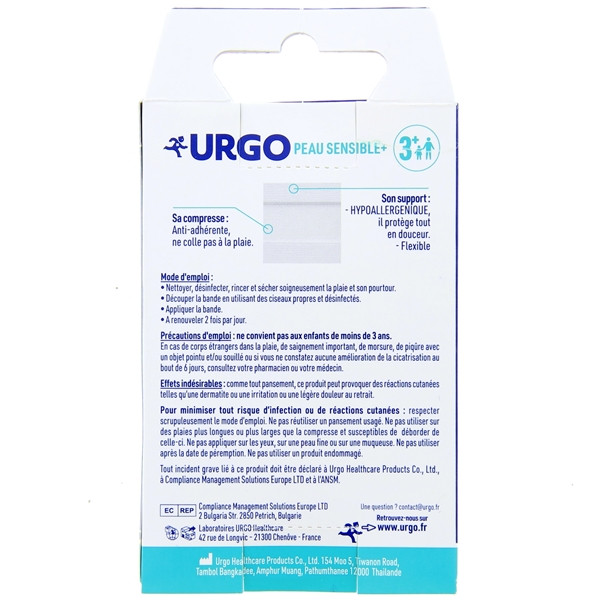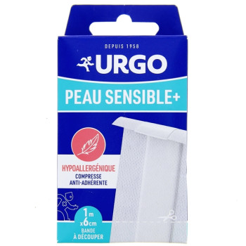 La bande à découper Peau Sensible+ de la marque Urgo a été spécialement conçue pour les peaux sensibles. Elle possède un support hypoallergénique et une compresse adhérente pour protéger efficacement et en douceur les plaies superficielles.