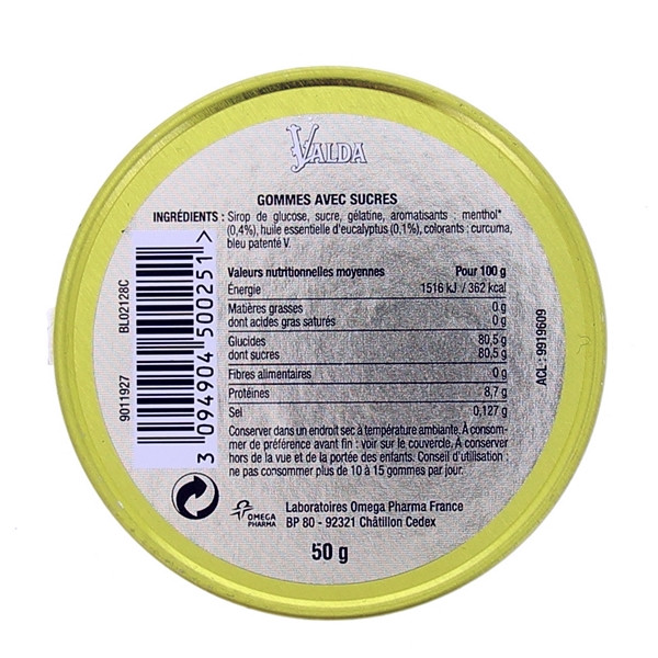Les Gommes Menthe Eucalyptus sont fabriquées en France par Valda, une marque iconique dans le domaine de la santé des voies aériennes supérieures et des voies respiratoires basses en améliorant la respiration et en soulageant les maux de gorge.