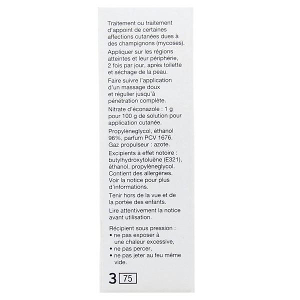 La solution en flacon pressurisé contient de l'alcool qui peut être irritant sur les muqueuses ou une peau lésée.