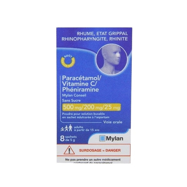 Ce médicament associe un antihistaminique qui a un effet asséchant sur les sécrétions nasales, du paracétamol qui a une action antipyrétique et antalgique, et de la vitamine C.