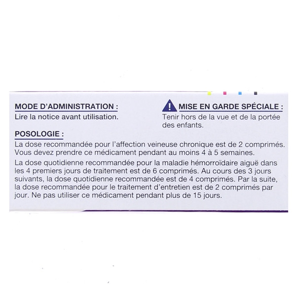 Insuffisance veineuse : 2 comprimés par jour, soit 1 comprimé, midi et soir.