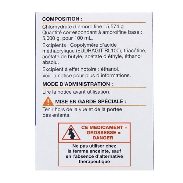 Ce médicament est un antifongique d'usage local actif sur différents champignons parasites des ongles (dermatophytes notamment). Il se présente sous forme de vernis à ongles permettant la diffusion de la substance active à travers l'ongle.