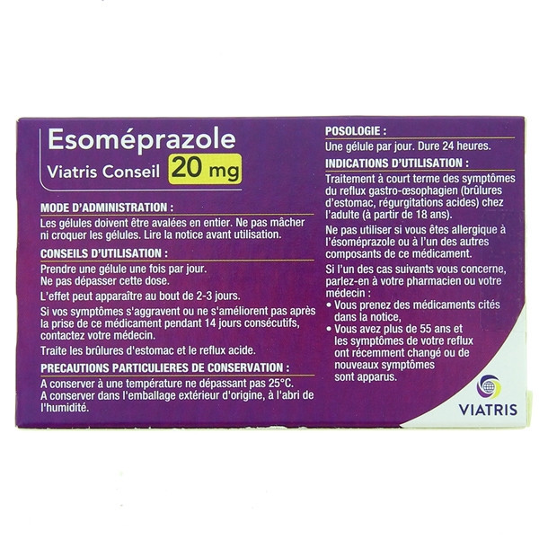 Esomeprazole 20 mg de Viatris est disponible en boîte de 7 gélules gastro-résistantes.