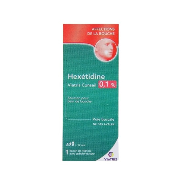 Hexetidine 0,1 % est disponible en flacon 400 ml.