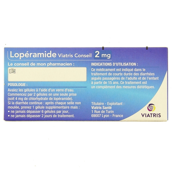 Loperamide Viatris Conseil 2mg x12 gélules Viatris