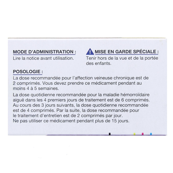 Insuffisance veineuse : 2 comprimés par jour, soit 1 comprimé, midi et soir.