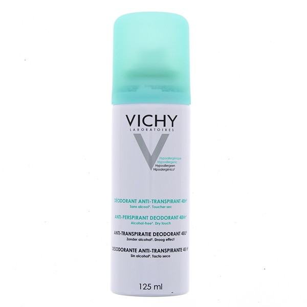 - Vaporiser quotidiennement en couche fine de Vichy Anti-transpirant Aérosol 48h sur une peau propre et sèche.