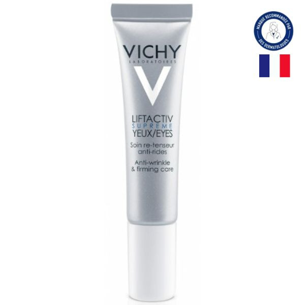 - Appliquer 2 fois par jour (matin et soir) Vichy Liftactiv Suprême Yeux par touches légères sur les cernes, la paupière mobile et la patte d’oie.