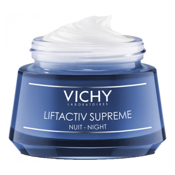 La crème de nuit Liftactiv Suprême des laboratoires Vichy est un soin anti-rides et anti-âge par excellence. Ce soin agit la nuit pour avoir tous les bénéfices des actifs sur la peau et avoir une peau éclatante dès le réveil.