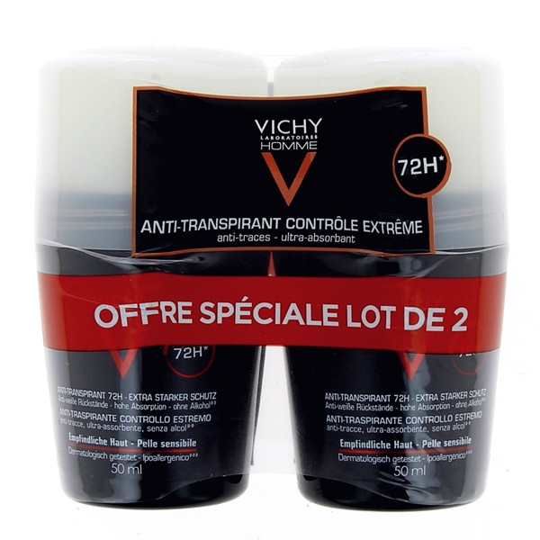 L'anti-transpirant pour homme, Contrôle extrême, proposé par les laboratoires Vichy est conçu pour supprimer de manière efficace la transpiration pendant 72 heures, en respectant les peaux sensibles. Ne laisse pas de traces.
