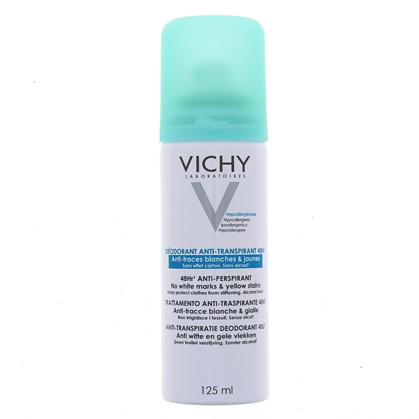 L'anti-transpirant en aérosol et anti traces proposé par les laboratoires Vichy est idéal pour se prémunir de la transpiration et de ses effets. Il permet de ne pas laisser de traces blanches et jaunes sur les vêtements.