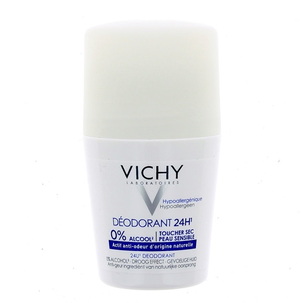 Le déodorant Bille 24 h Toucher Sec proposé par la marque Vichy a été formulé sans sels d'aluminium pour établir une sécurité d'utilisation pour tout type de peau, même les plus fragiles. Il contient de la perlite qui est un agent extrêmement absorbant pour garantir un résultat idéal sur l'humidité et les odeurs.
