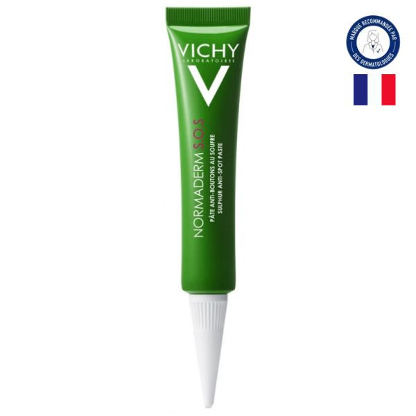 Normaderm SOS Pâte Anti-boutons au Souffre 20ml de Vichy constitue un soin ciblé anti-imperfections. Il assèche, calme et diminue l’apparence des boutons. Ce produit matifiant répond aux besoins des personnes ayant une peau à problèmes et/ou sensible.