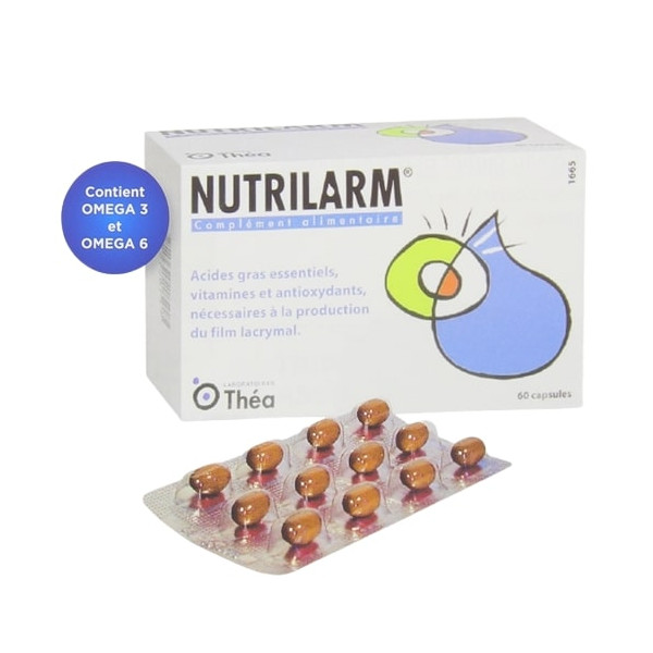 Développé par les laboratoires Théa, le complément alimentaire à visée oculaire NUTRILARM offre une formule complète à base de vitamines, d'acides gras essentiels et d'oligo-éléments essentiels à la bonne santé de l'oeil.