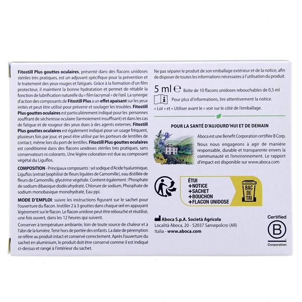 Fitostill Plus gouttes oculaires est également indiqué pour un usage fréquent, plusieurs fois par jour, et peut être utilisé par les porteurs de lentilles de contact, même durant le port de lentilles.