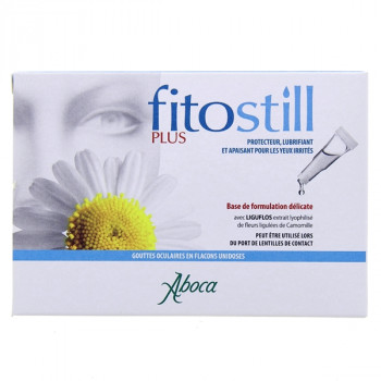 Fitostill Plus aide à lénifier et prévenir l'irritation oculaire, à atténuer la sensation de brûlure due aux agents externes agressifs ou aux efforts visuels prolongés et à soulager les yeux rouges. Particulièrement indiqué aux personnes souffrant des gênes liées au syndrome de l'œil sec (diminution de la qualité et de la quantité des larmes produites).