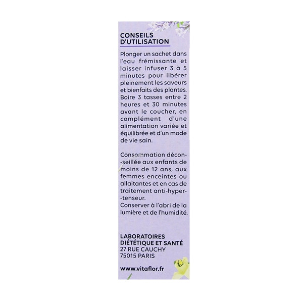 Il est conseillé de conserver Infusion Sommeil Bio dans un endroit à l’abri de la lumière et de l’humidité. Il est indiqué de tenir cette tisane hors de la portée des enfants. Il est recommandé de respecter la posologie prescrite pendant une cure avec ce complément alimentaire vitaflor.