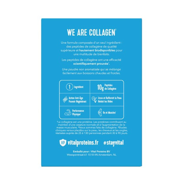 Vital Proteins Collagen Peptides en sachet non aromatisé contribue à soutenir l'approvisionnement naturel en collagène du corps. Les peptides de collagène sont hautement biodisponible donc facilement absorbés par l'organisme. Les sticks individuels sont faciles à transporter et à emporter partout avec vous.
