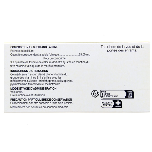 | Acide folinique | 5 mg | 15 mg | 25 mg |
