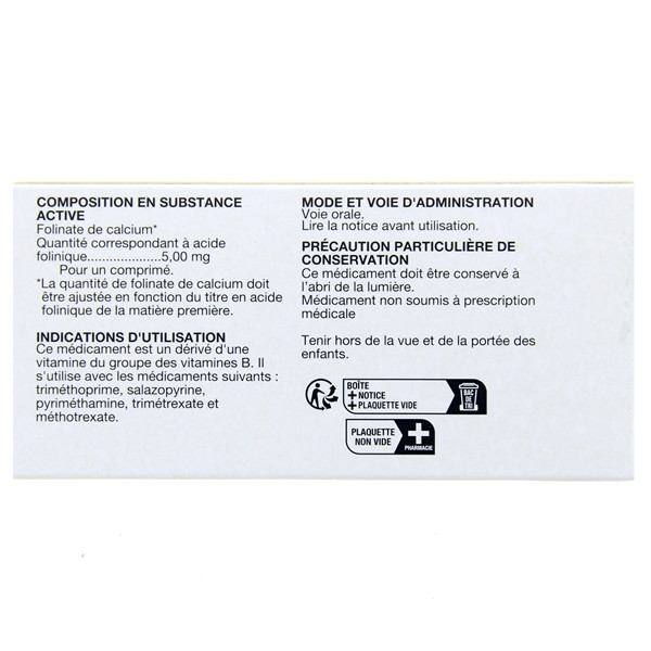 | Acide folinique | 5 mg | 15 mg | 25 mg |