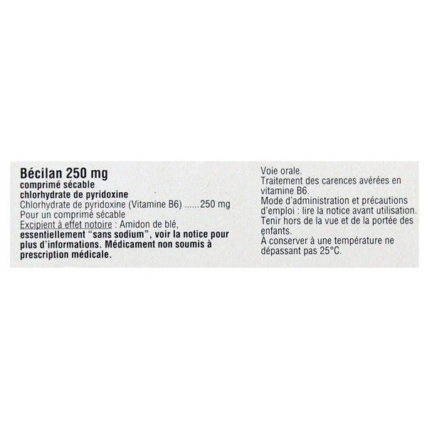 | Pyridoxine chlorhydrate (vitamine B6) | 250 mg | 250 mg |