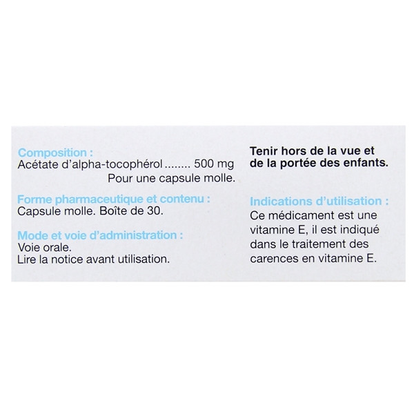 | Alpha-tocophérol acétate (vitamine E) | 500 mg |