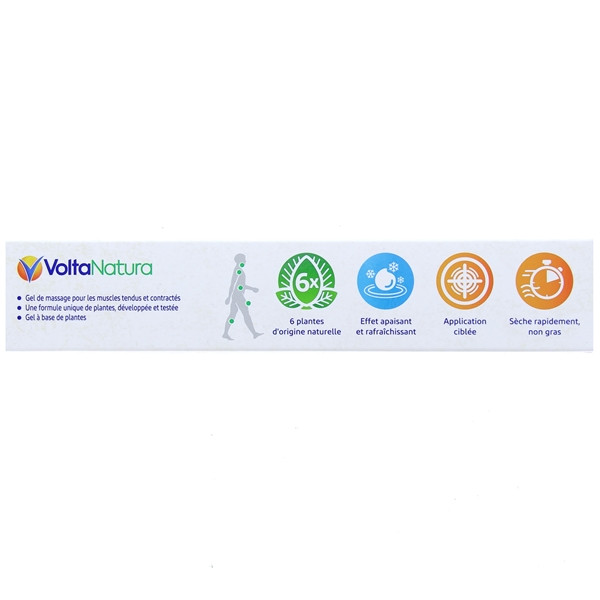 Voltanatura Gel de massage est formulé à base de 6 plantes pour apaiser et relaxer naturellement les tensions musculaires.