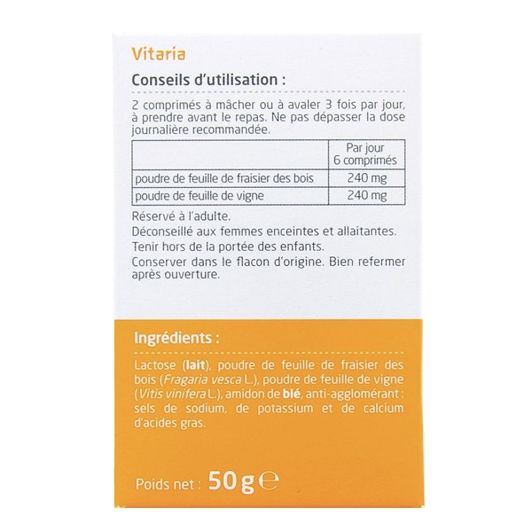 Vitaria est formulé à base de feuille de vigne et de feuille de fraisier des bois.