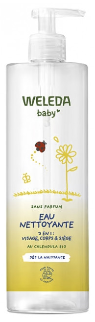 L'eau Nettoyante sans parfum au Calendula Bio de Weleda Baby offre une action 3 en 1. Elle nettoie efficacement et en douceur le visage, le corps et le siège des bébés dès la naissance, mais aussi de toute la famille.