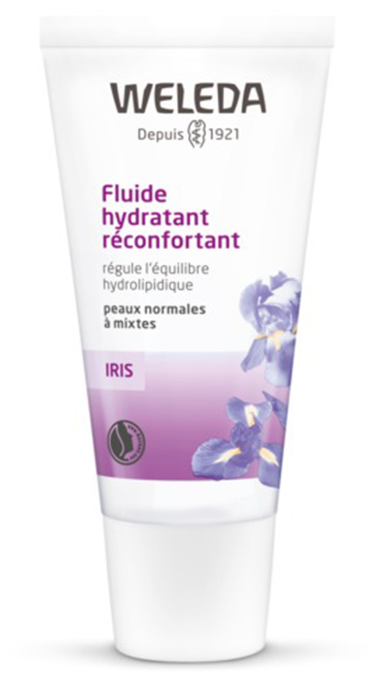 Le fluide hydratant réconfortant Weleda assure l’hydratation de la peau. À base de substances naturelles comme l’iris, il ralentit la perte en eau. Quant aux cires naturelles et aux huiles végétales, elles protègent la peau, maintenant l’équilibre hydrolipidique. L’iris favorise l’hydratation de la peau et l’iris bio maintient l’eau dans sa racine.