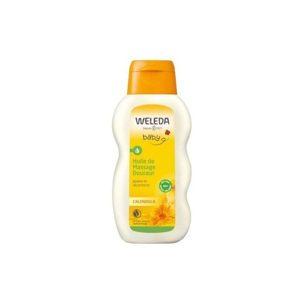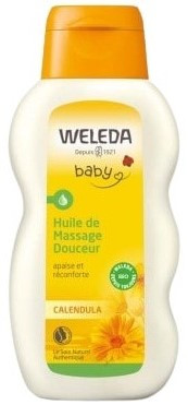 Au Calendula : adapté au massage de bébé, soutient les fonctions de l'épiderme. Entoure bébé d'une enveloppe de chaleur bienfaisante. Les huiles d'amande douce et de sésame biologiques préviennent le dessèchement cutané et préservent la douceur de la peau. Les extraits de Calendula et de camomille calment et apaisent.