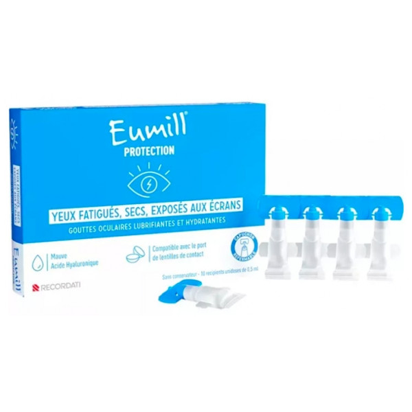 Découvrez Eumill protection monodoses de 0.5ml sur illicopharma.com. Ce produit est compatible avec le port de lentille de contact. Gouttes oculaires lubrifiantes et hydratantes pour les yeux secs exposés aux écrans.