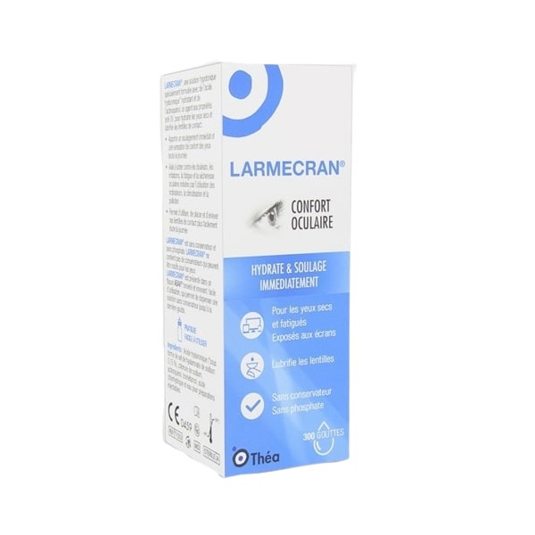 La solution Larmecran des laboratoires Théa est indiqué pour le confort oculaire. Sous forme de gouttes, Larmecran hydrate et soulage immédiatement les yeux secs, fatigués, exposés aux écrans et lubrifie les lentilles.