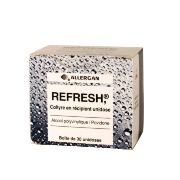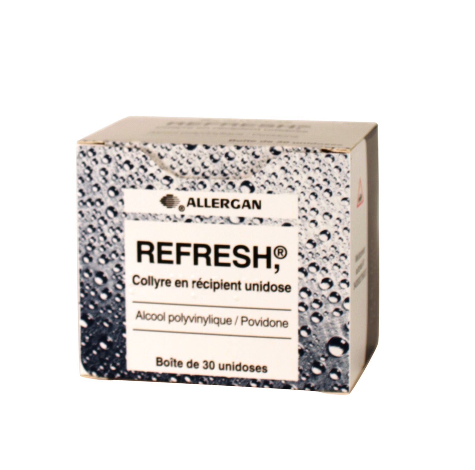 Le collyre Refresh est disponible en boîte de 30 unidoses de 0,4ml.
