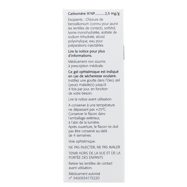 N'utilisez pas ce gel ophtalmique de façon prolongée sans prendre un avis médical.