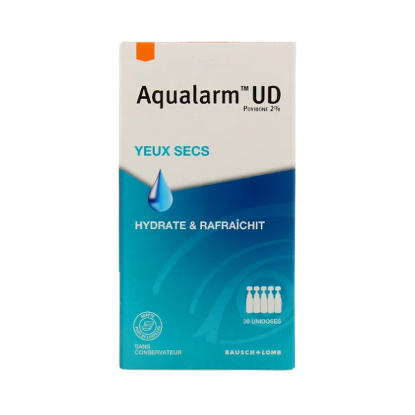 Aqualarm UD Yeux secs est une solution ophtalmique indiquée pour les yeux secs. Adapté au port de lentilles. Povidone 2 %