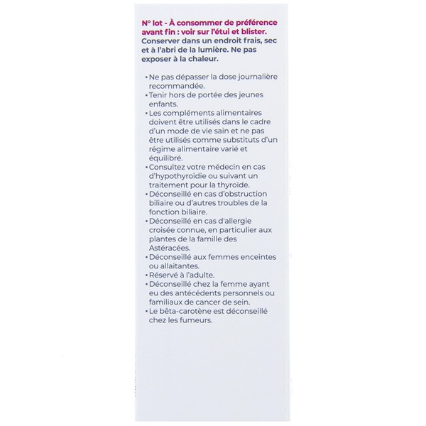 - Ce supplément nutritionnel est déconseillé aux femmes enceintes ou allaitantes et aux enfants et adolescentes de moins de 15 ans.