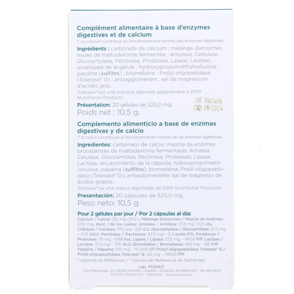 Inovance Enzymes du laboratoire Ysonut est un complément alimentaire à base d’enzymes digestives et de calcium.