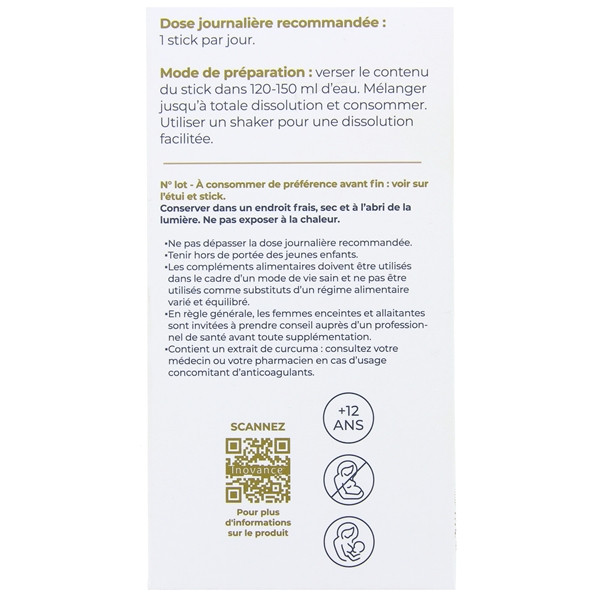 Facile à préparer, Inovance Hyalurovance est conditionné en sticks. Chaque contenant comprend la dose journalière dont le corps a besoin pour faire le plein de collagène.
