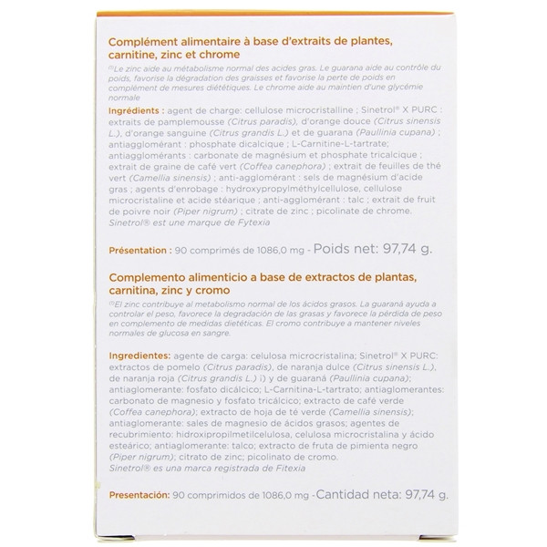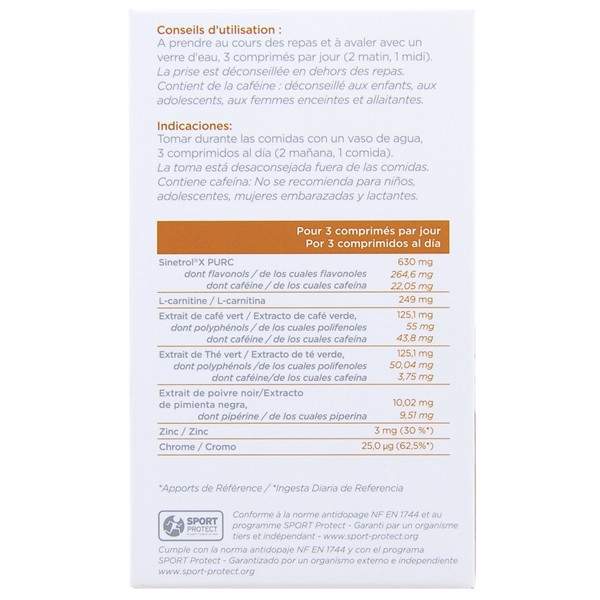 Sinetrol®X, thé vert, café vert, L-carnitine, poivre noir, chrome et zinc.