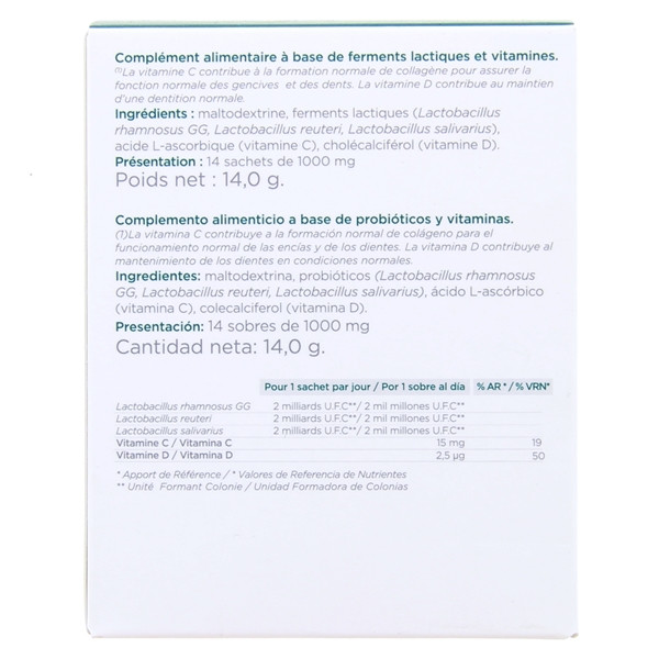 Ce complément alimentaire se caractérise par sa composition enrichie de ferments lactiques de trois souches de lactobacillus. Ces alliés de la sphère buccale ont la capacité de maintenir l’équilibre du microbiote de la cavité buccale. Ce produit Ysonut contient en plus de la vitamine C connue pour favoriser la production naturelle de collagène. Ce dernier constitue un composant structurel capital pour le fonctionnement normal des gencives et des dents. En outre, il recèle également de la vitamine D. Ce nutriment contribue grandement au maintien d'une bonne dentition.