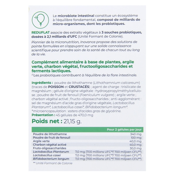 Inovance Reduflat du laboratoire Ysonut est un complément alimentaire indiqué pour contribuer à l'équilibre de la flore intestinale.