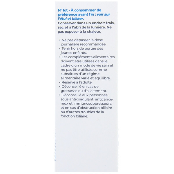 - L’usage de ce supplément est déconseillé en cas de grossesse ou d’allaitement.